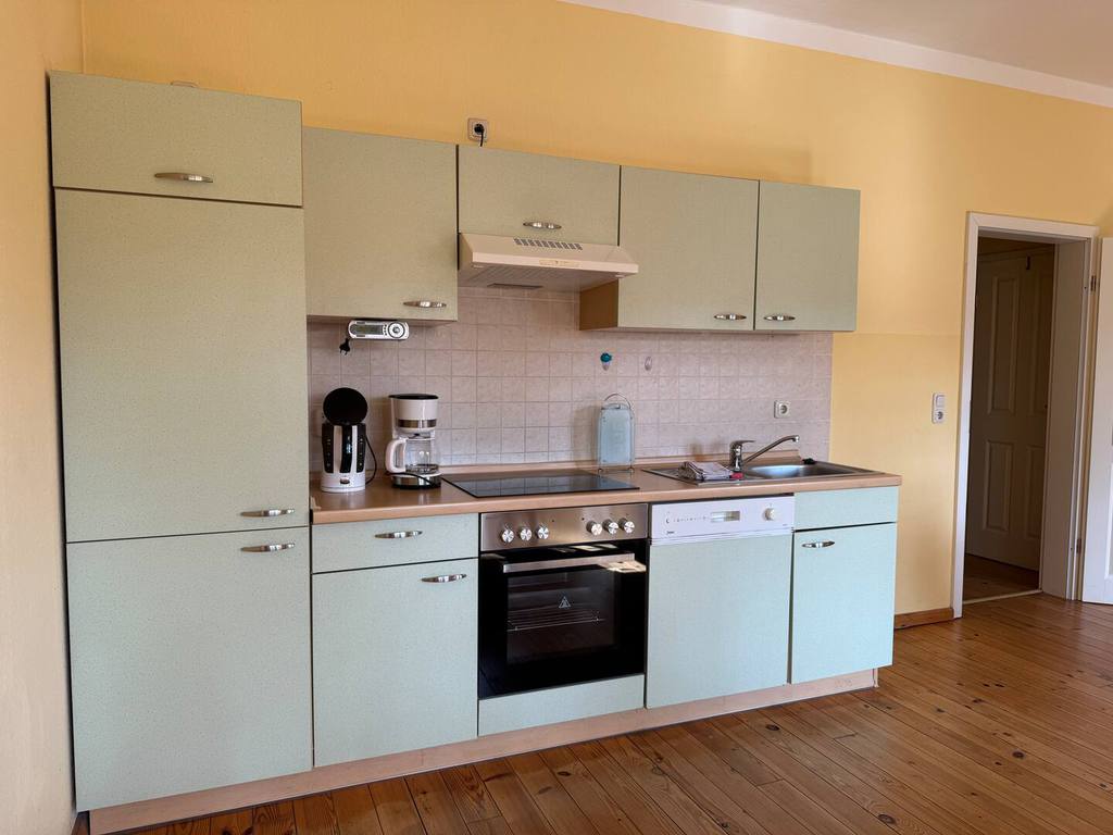Voll ausgestattete Küchenzeile (Herd, Backofen, Kühlschrank, Geschirrspüler, Kaffeemaschine, Wasserkocher)